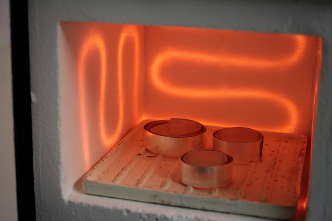 The thinned gold or silver metal is now heated so as to allow it to be cut and formed into the necessary sizes for further processing.